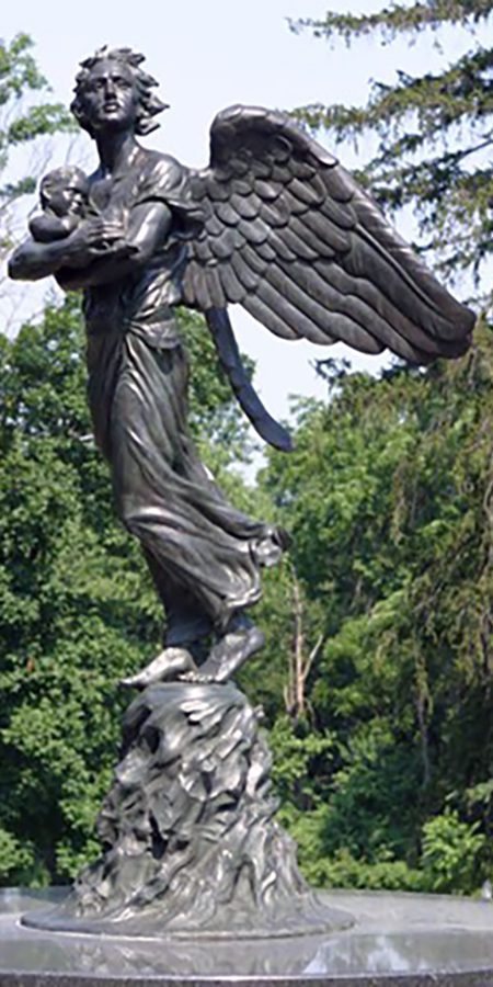 This 6′ bronze was sculpted in 1985 and graces several church gardens and cemeteries. It is an edition of six. The sculpture is meant to represent the journey of the soul into heaven in the comforting arms of an angel. Jay Hall Carpenter, Sculptor Various locations, MN, DC, FL, MD