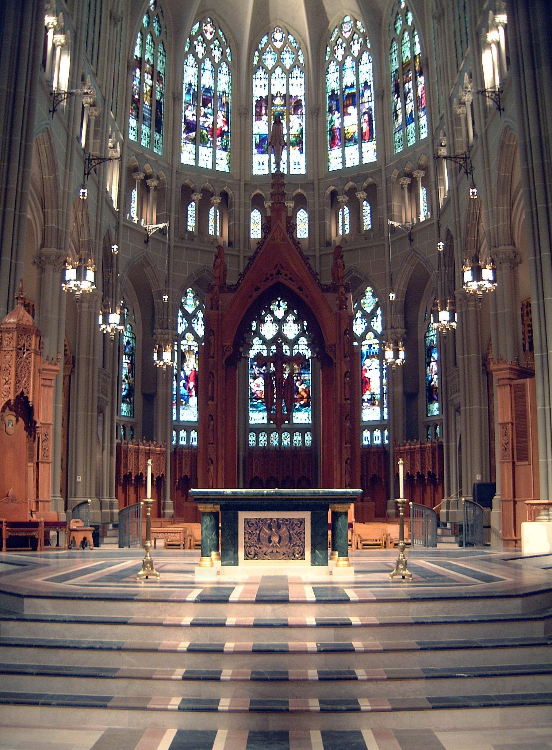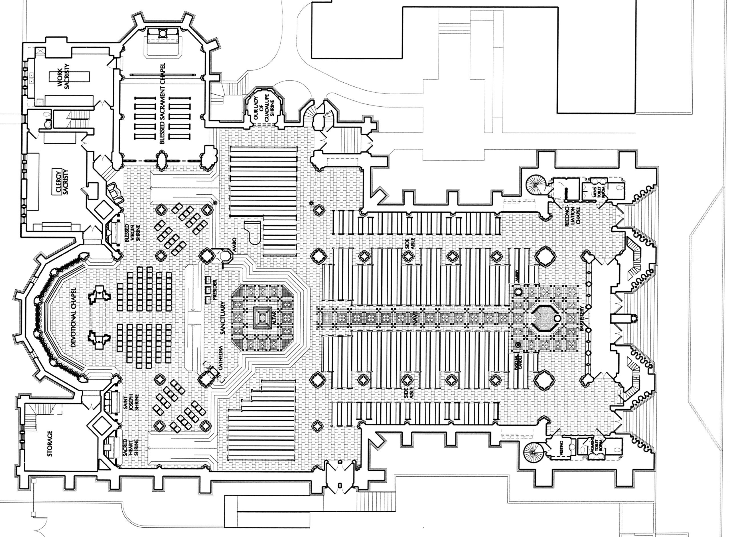 The major elements of the of the liturgical renewal were moving the altar to the great crossing of the cathedral, placement of the baptismal font near the main entrance on axis with the altar and repositioning the cathedra nearer to and facing the assembly.