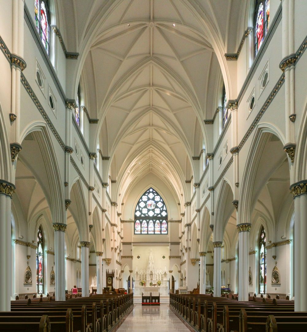 The cornerstone for the first cathedral was laid on July 30, 1850, only to be destroyed just eleven years later by a fire that devastated most of the city of Charleston. The building that stands today was designed by prolific church architect, Patrick Keely and built in 1890.