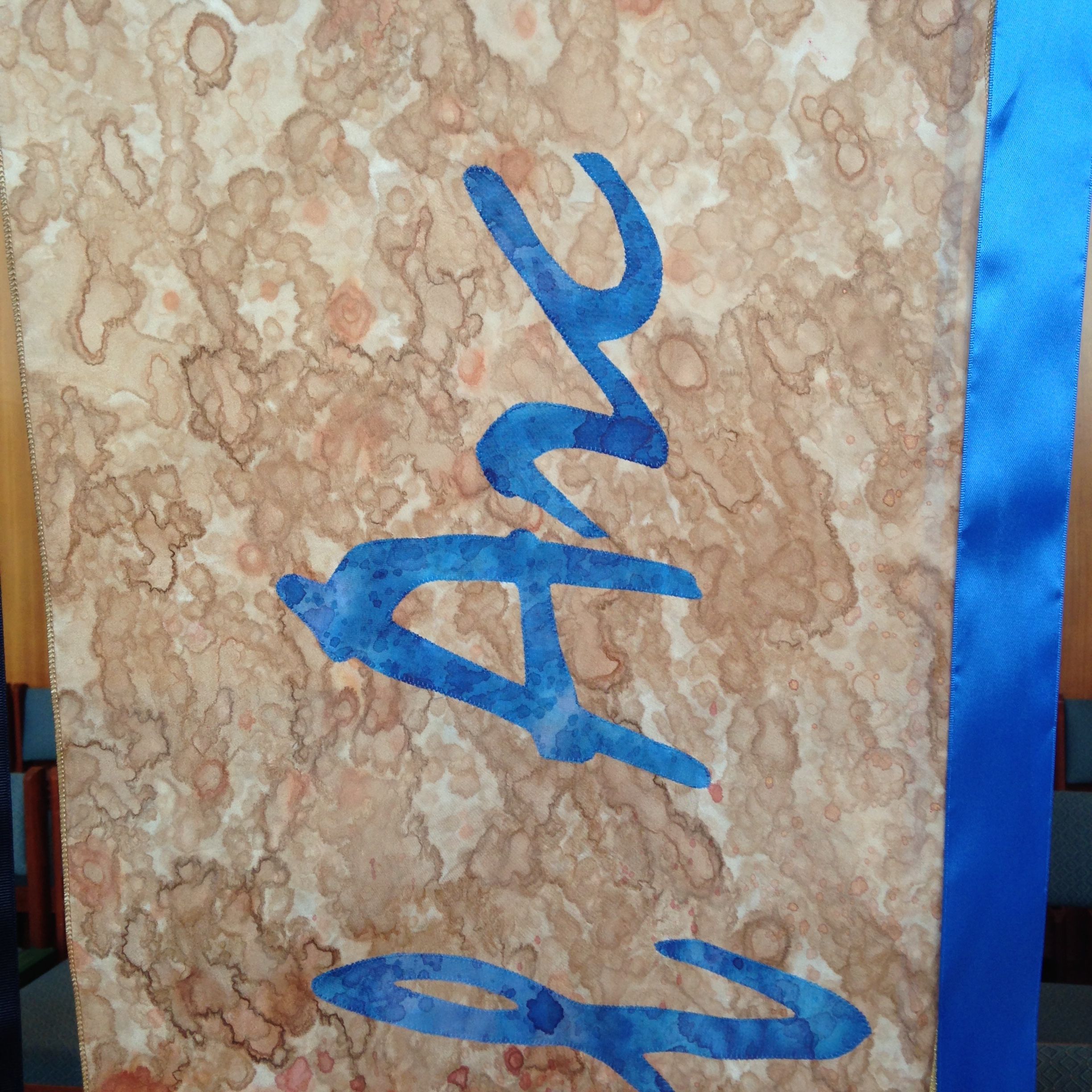 These two banners were commissioned by churches in the Diocese of Youngstown for the Chrism mass. In this diocese, parishes were asked to create a banner with the name and town of their church. The major background color was assigned, based on the deanery.