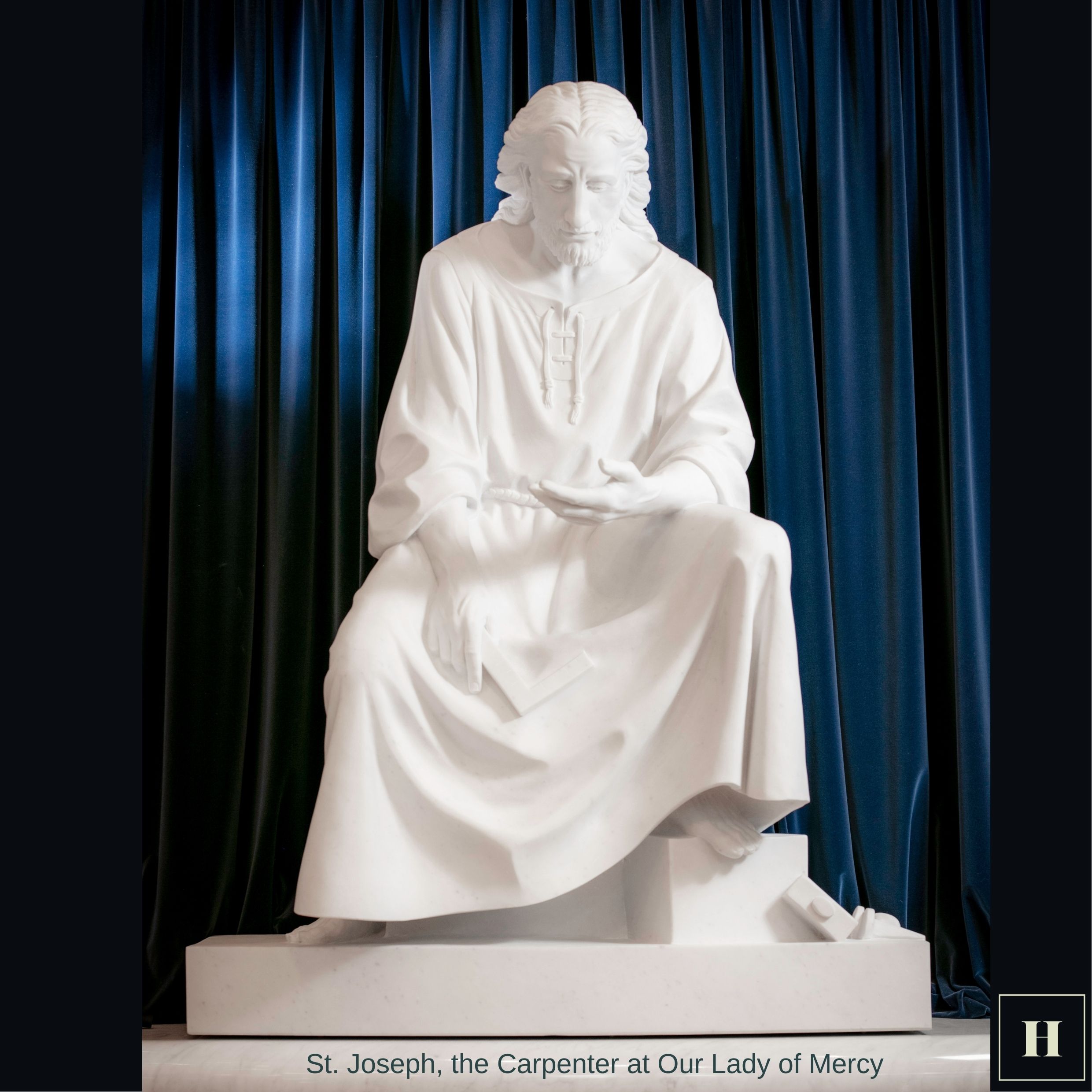 Our Lady of Mercy Catholic Church in Potomac commissioned Sarah to created two larger-than-life sized sculptures, The Virgin Annunciate and St. Joseph, the Carpenter, cut from Carrara marble for their new sanctuary. She articulated the clay sculptures in her Maryland studio, then, per Renaissance tradition, she sent the plaster casts to a marble carving studio to be copied.