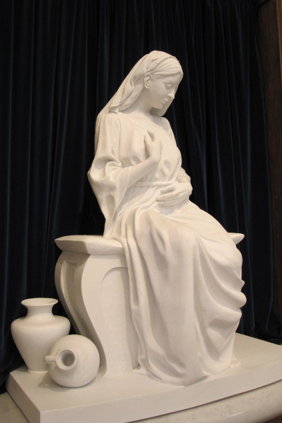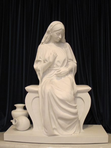 Our Lady of Mercy Catholic Church in Potomac commissioned Sarah to created two larger-than-life sized sculptures, The Virgin Annunciate and St. Joseph, the Carpenter, cut from Carrara marble for their new sanctuary. She articulated the clay sculptures in her Maryland studio, then, per Renaissance tradition, she sent the plaster casts to a marble carving studio to be copied.